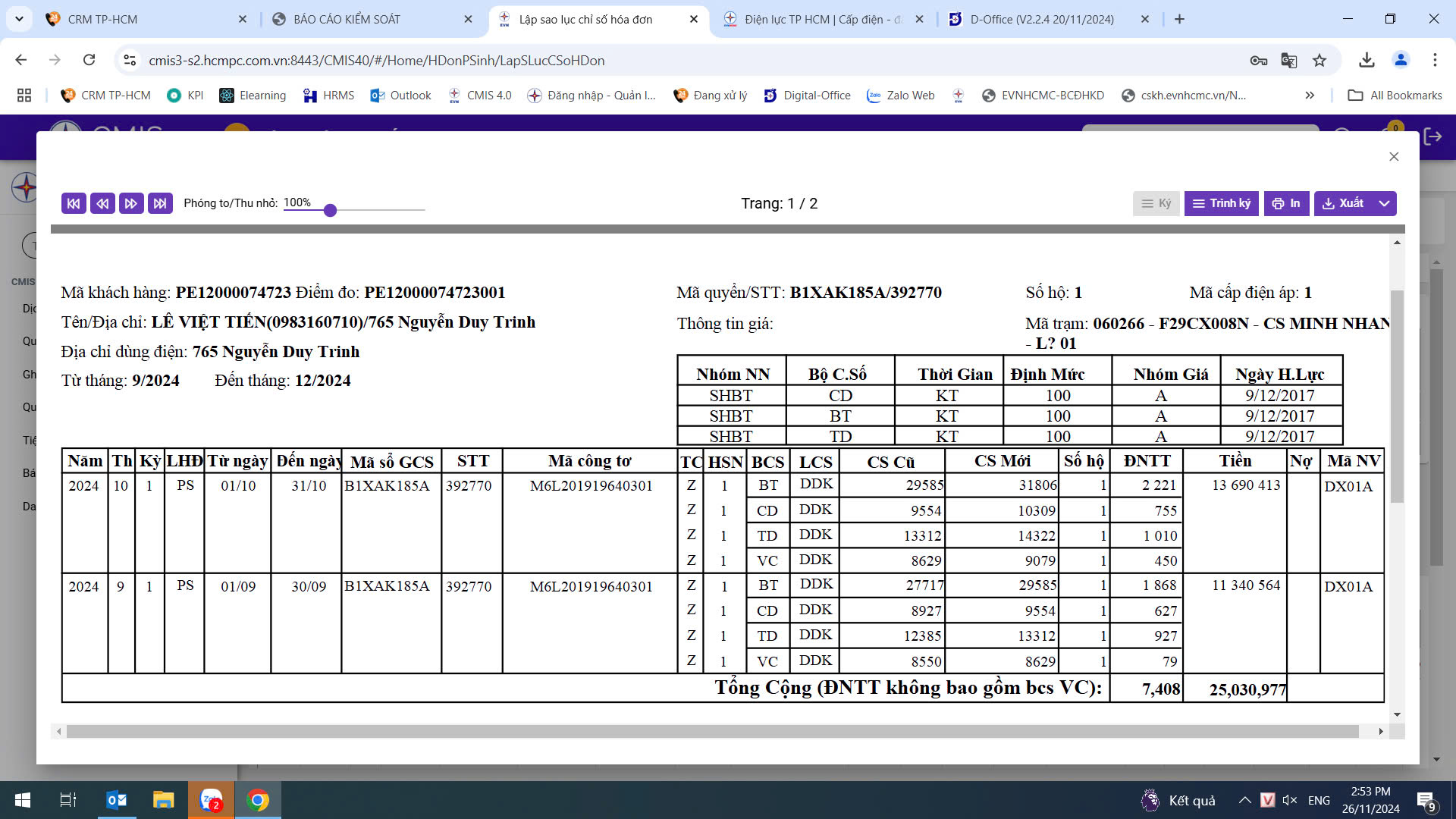 (Bảo trì định kỳ và thay thế VTTB tại trạm biến áp 3*25KVA CS MINH NHAN ID: 060266)